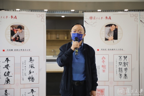 11月1日,战疫——致敬后勤员工书画展正式开幕。复旦大学副校长汪源源出席开幕式并讲话。校书画篆刻研究会常务副会长周桂发,副会长郑召利、刘伟民,理事谭国恩、施正康,总务处、保卫处、工会相关领导和工作人员,以及在校物业、安保、餐饮服务企业员工代表参加活动。