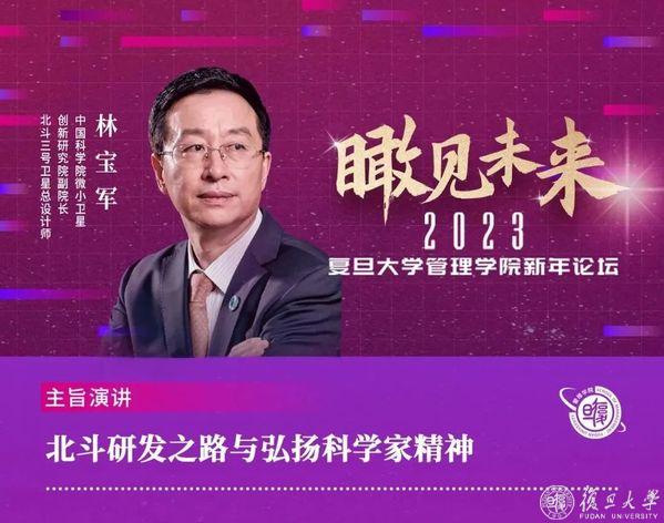 中国科学院微小卫星创新研究院副院长、北斗三号卫星总设计师林宝军发表主题演讲“北斗研发之路与弘扬科学家精神”。