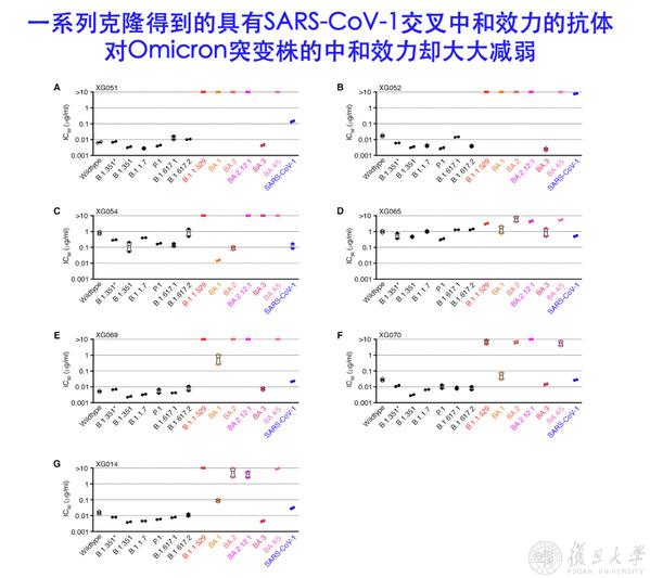 近日,上海市重大传染病和生物安全研究院双聘PI、复旦大学基础医学院王乔、姜世勃团队以及复旦大学生物医学研究院孙蕾等团队在《医学病毒学杂志》(Journal of Medical Virology)发表研究论文,题为:Characterization of cross-reactive monoclonal antibodies against SARS-CoV-1 and SARS-CoV-2: implication for rational design and development of pan-sarbecovirus vaccines and neutralizing antibodies。该研究从新冠感染恢复者体内克隆了一系列针对非典病毒(SARS-CoV-1)和SARS-CoV-2_Wildtype具有交叉反应力的单克隆抗体,该研究进一步测量比对了一系列已经报道的新冠广谱中和抗体,揭示了其针对SARS-CoV-1与SARS-CoV-2_Omicron中和效力的负相关性,从而提出了“寻找鉴定能同时高效中和SARS-CoV-1与Omicron”的广谱中和抗体筛选策略。