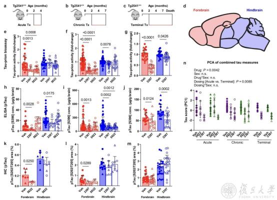 脑科学转化研究院青年研究员袁鹏与美国加州大学旧金山分校Carlo Condello团队合作,于2023年1月9日在Nature Communications发表了一篇题为 “CSF1R inhibitors induce a sex-specifific resilient microglial phenotype and functional rescue in a tauopathy mouse model ”的研究工作 。他们发现CSF1R抑制剂在雌雄小鼠中均起到消融小胶质细胞的作用,并造成致病性tau蛋白的减少,但只使雌性小鼠的生理功能被恢复和生存时间延长。此外,仅在雄性小鼠的大脑中发现CSF1R抑制剂剂量依赖性的即刻早期基因上调和神经递质异常,提供了一种性别特异性的兴奋性毒性机制 。这项工作揭示了靶向小胶质细胞的治疗应该考虑性别依赖性的影响。