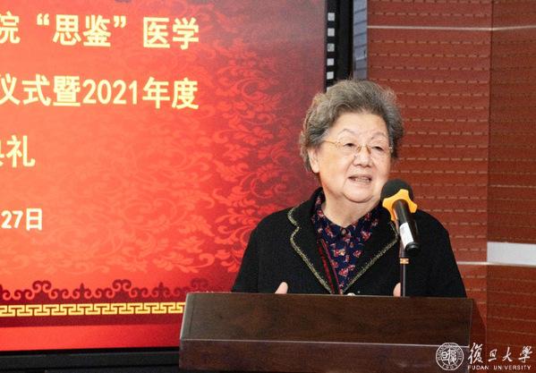 左焕琛深情回顾了“思鉴”医学科教创新基金的由来。她表示,基金取名“思鉴”二字,既是对上医前辈先贤的缅怀和纪念,也是激励后人以史为镜、鉴思鉴行。设立“思鉴”医学科教创新基金的目的是鼓励医学学科,尤其是基础医学学科继承和发扬上医先贤优良传统,不忘初心,砥砺前行,促进医学教育、科研事业的发展,培养更多的优秀医学人才。她希望青年一代牢记“正谊明道”的院训,“听党的话,为人群服务”,在促进基础研究和科技创新,助力民族振兴和建设科技强国中贡献自己最大的力量。
