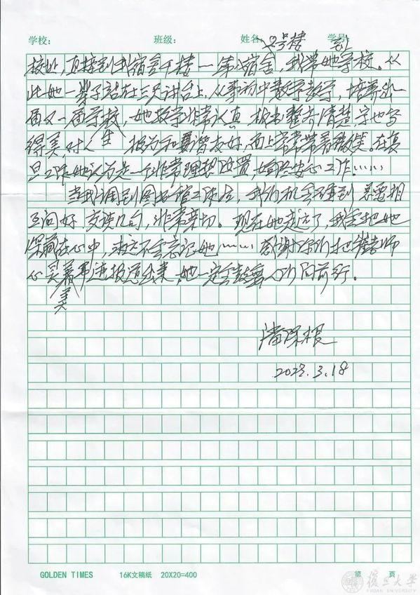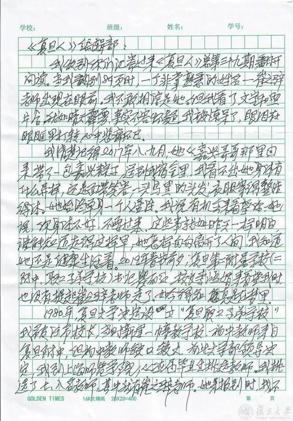 “我收到你们寄过来的《复旦人》总第39期,当翻到84页时,一个非常熟悉的名字出现在眼前。我不敢相信是她......”
