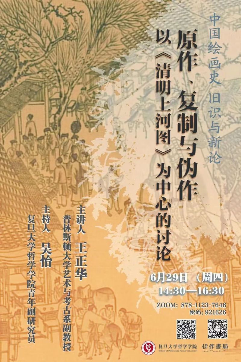类 型:讲座 校 区:邯郸校区 主 题:原作、复制与伪作:以《清明上河图》为中心的讨论 日 期:2023-06-29 时 间:14:30—16:30 主讲嘉宾:王正华副教授 地 点:ZOOM:878-1123-7646 密码:921626 主办方:复旦大学哲学学院 承办方:议 程: 附 件: