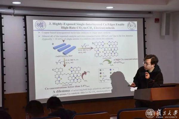 在实践摸索中,徐子楷确定了做科研的想法。明确个人规划路径后,他渐渐意识到课堂上所讲授的化学基础理论已不能满足他的求知欲。于是,他在进入复旦后的第一学期便主动与老师交流,加入了先进材料实验室郑耿锋教授课题组,开展用于电催化二氧化碳还原反应的催化剂设计方面的研究。