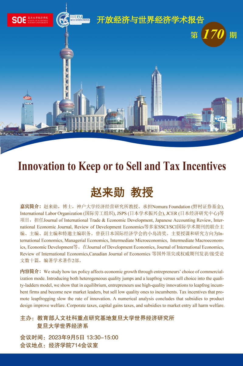 开放经济与世界经济学术报告第170期丨Innovation to Keep or to Sell and Tax Incentives