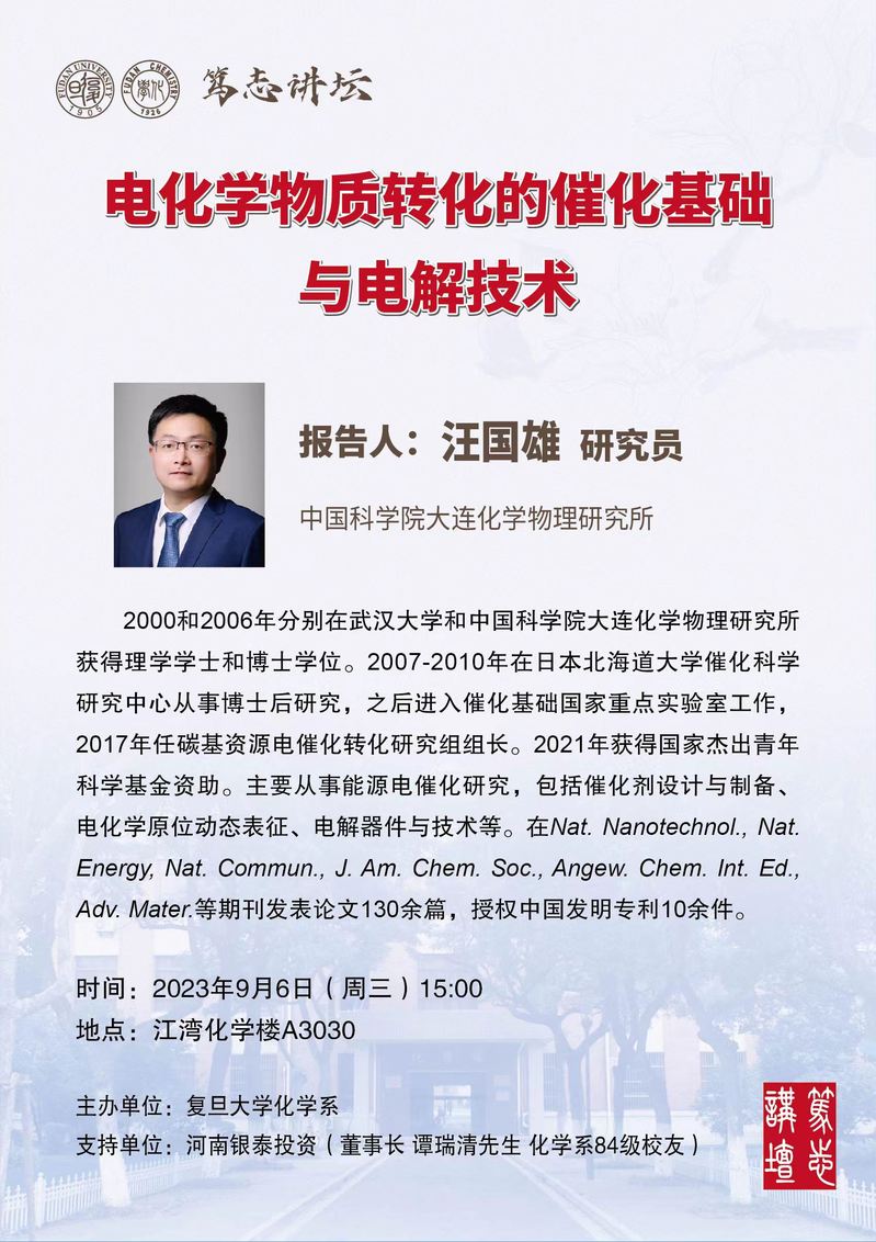 类 型:讲座 校 区:江湾校区 主 题:笃志讲坛丨电化学物质转化的催化基础与电解技术 日 期:2023-09-06 时 间:2023年9月6日 (周三)15:00 主讲嘉宾:汪国雄 地 点:江湾化学楼A3030 主办方:复旦大学化学系 承办方:议 程: 附 件: