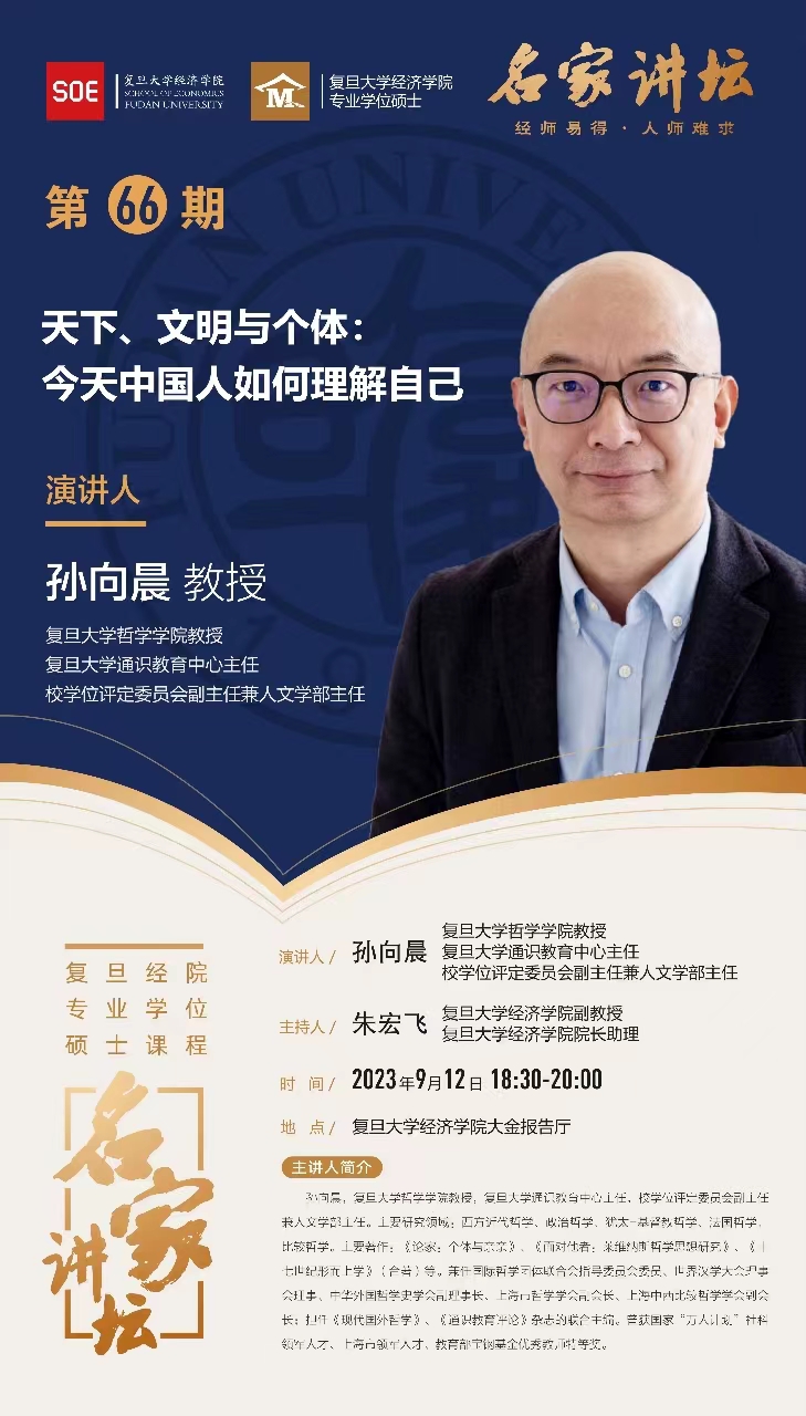 类 型:讲座 校 区:邯郸校区 主 题:名家讲坛—第66期 天下、文明与个体:今天中国人如何理解自己 日 期:2023-09-12 时 间:18:30-20:00 主讲嘉宾:孙向晨 地 点:复旦大学经济学院大金报告厅 主办方:复旦大学经济学院 承办方:议 程: 附 件: