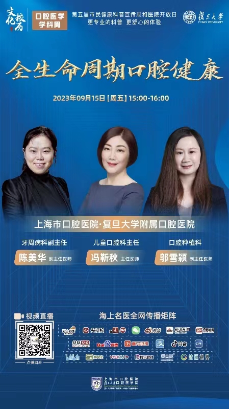 类 型:学科周 校 区:邯郸校区 主 题:口腔医学学科周丨全生命周期口腔健康 日 期:2023-09-15 时 间:15:00-16:00 主讲嘉宾:陈美华、冯靳秋、邬雪颖 地 点:扫码观看直播 主办方:复旦大学口腔医学系 承办方:议 程: 附 件: