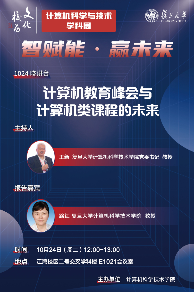 类 型:讲座 校 区:江湾校区 主 题:计算机教育峰会与计算机类课程的未来 日 期:2023-10-24 时 间:12:00-13:00 主讲嘉宾:路红 地 点:二号交叉学科楼E1021 主办方:计算机科学技术学院 承办方:议 程: 附 件: