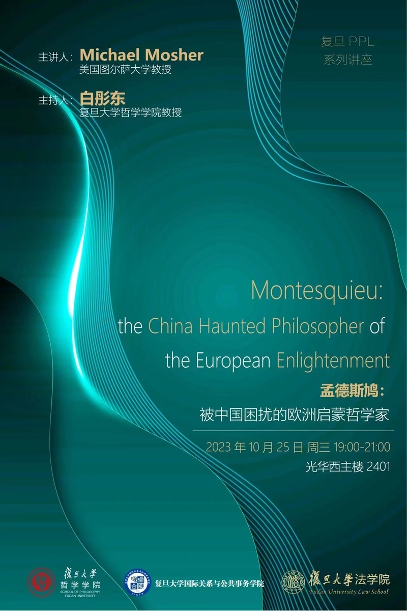 类 型:讲座 校 区:邯郸校区 主 题:孟德斯鸠: 被中国困扰的欧洲启蒙哲学家 日 期:2023-10-25 时 间:19:00-21:00 主讲嘉宾:Michael Mosher 地 点:光华西主楼 2401 主办方:复旦大学哲学学院、复旦大学国际关系与公共事务学院、复旦大学法学院 承办方:议 程: 附 件: