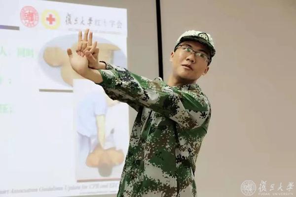 军训期间,侯东岳为张江校区同学普及急救知识