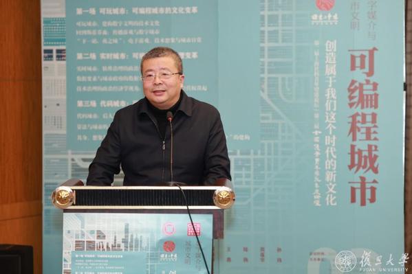 20231226日下午,“可编程城市:数字媒介与城市文明”第二届上海社科青年望道论坛暨《探索与争鸣》第三届全国优秀青年学人年度论坛在复旦大学举行。论坛由上海社联《探索与争鸣》杂志社、上海社科中心研究部、复旦大学信息与传播研究中心、复旦大学新闻学院共同主办。复旦大学党委常委、副校长陈志敏,上海市社联党组成员、专职副主席任小文,出席本次论坛开幕式并致辞,新闻学院党委书记陆柳主持开幕式。《探索与争鸣》主编、编审叶祝弟,《探索与争鸣》编辑屠毅力,复旦大学信息与传播研究中心主任孙玮,复旦大学新闻学院副院长周葆华,复旦大学中国语言文学系教授陆扬,同济大学艺术与传媒学院教授王鑫,以及来自复旦大学、同济大学、上海交通大学、华东师范大学、南京大学、上海社会科学院等高校和研究机构的9位优秀青年学者,共同出席本次论坛,并围绕“可编程城市:数字媒介与城市文明”这一主题,分别从“可玩城市”“实时城市”与“代码城市”三个角度展开圆桌讨论。