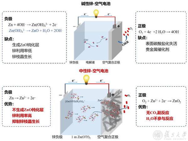新型中性锌空气电池和传统碱性锌空气电池的反应机制和优劣对比