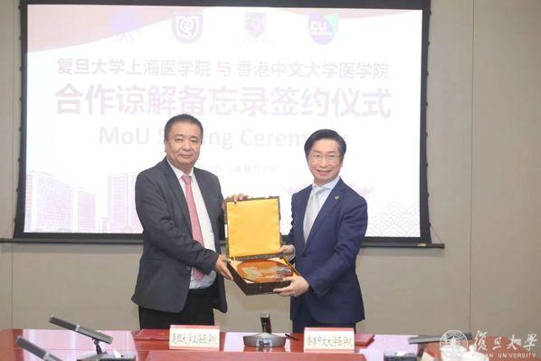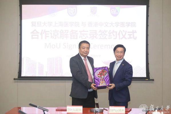 5月28日上午,复旦大学上海医学院与香港中文大学医学院合作谅解备忘录(MOU)签约仪式在复旦大学逸夫楼举行。两校将共同推动医学领域的创新与发展,在医学教育、科研及公共卫生领域携手开启深度合作的新篇章。