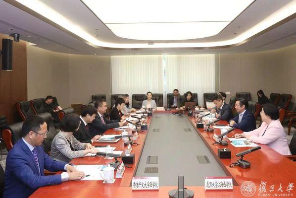 随后,复旦大学上海医学院与香港中文大学医学院战略合作交流会议举行,双方代表团就合作具体落地内容进行了交流讨论。会后,香港中文大学医学院代表团前往复旦大学附属中山医院参访。