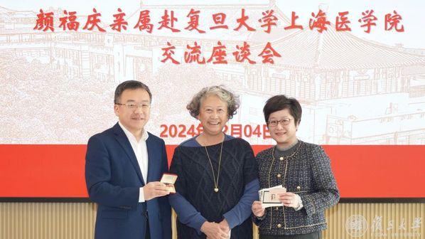 袁正宏代表复旦上医向颜福庆亲属赠送纪念品,感谢家属不远万里从大洋彼岸把颜福庆老校长的崇高精神与生平故事带回上医。