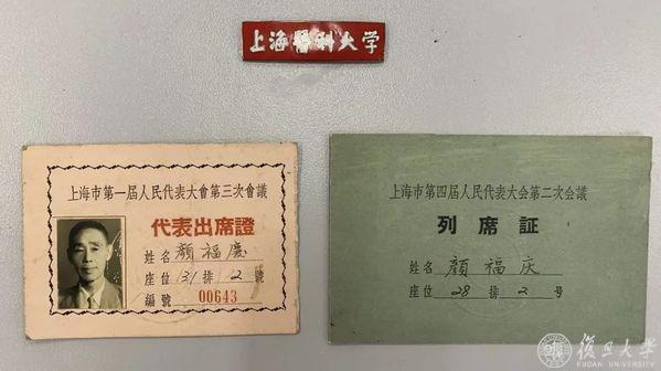 亲属代表还向学校捐赠了颜福庆参加上海市第一届人民代表大会第三次会议的代表出席证、上海市第四届人民代表大会第二次会议的列席证等珍贵的历史资料和老照片。