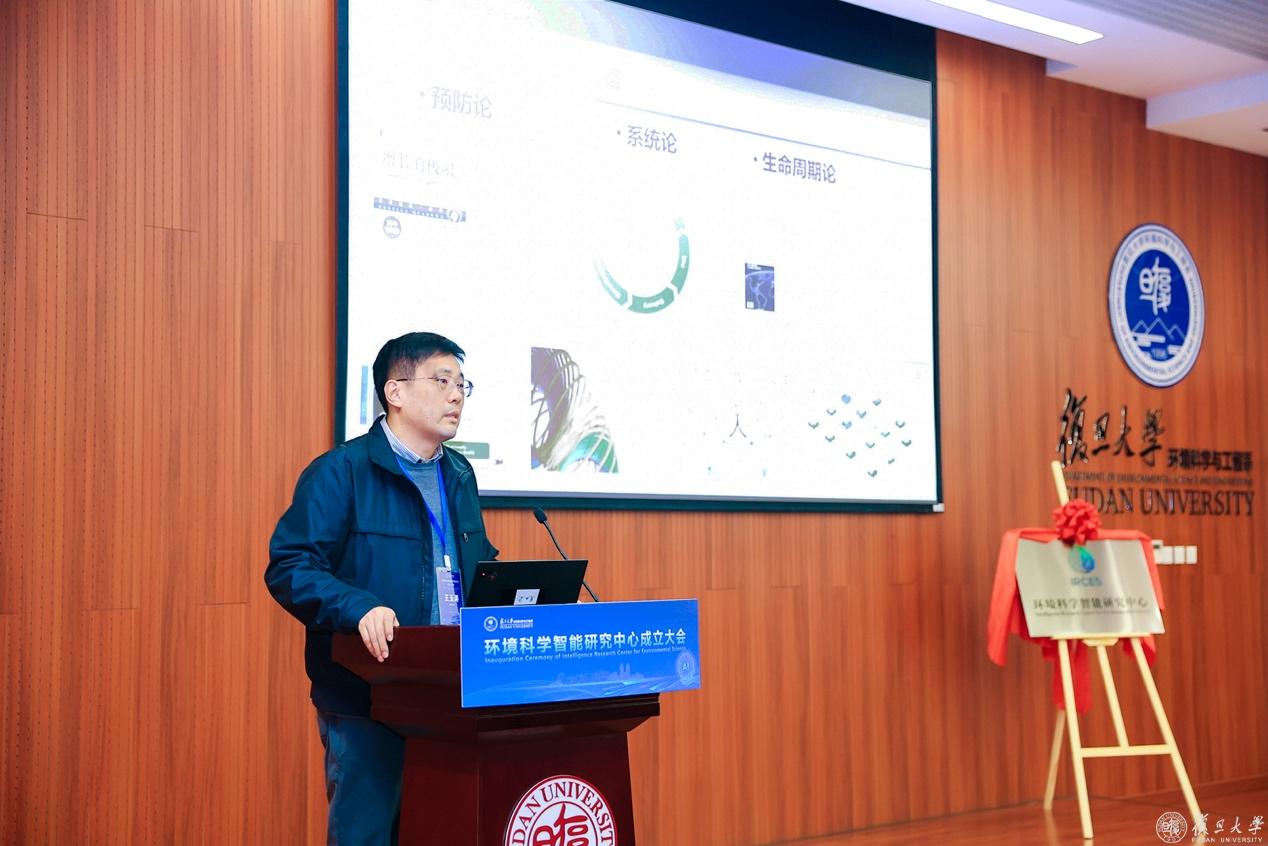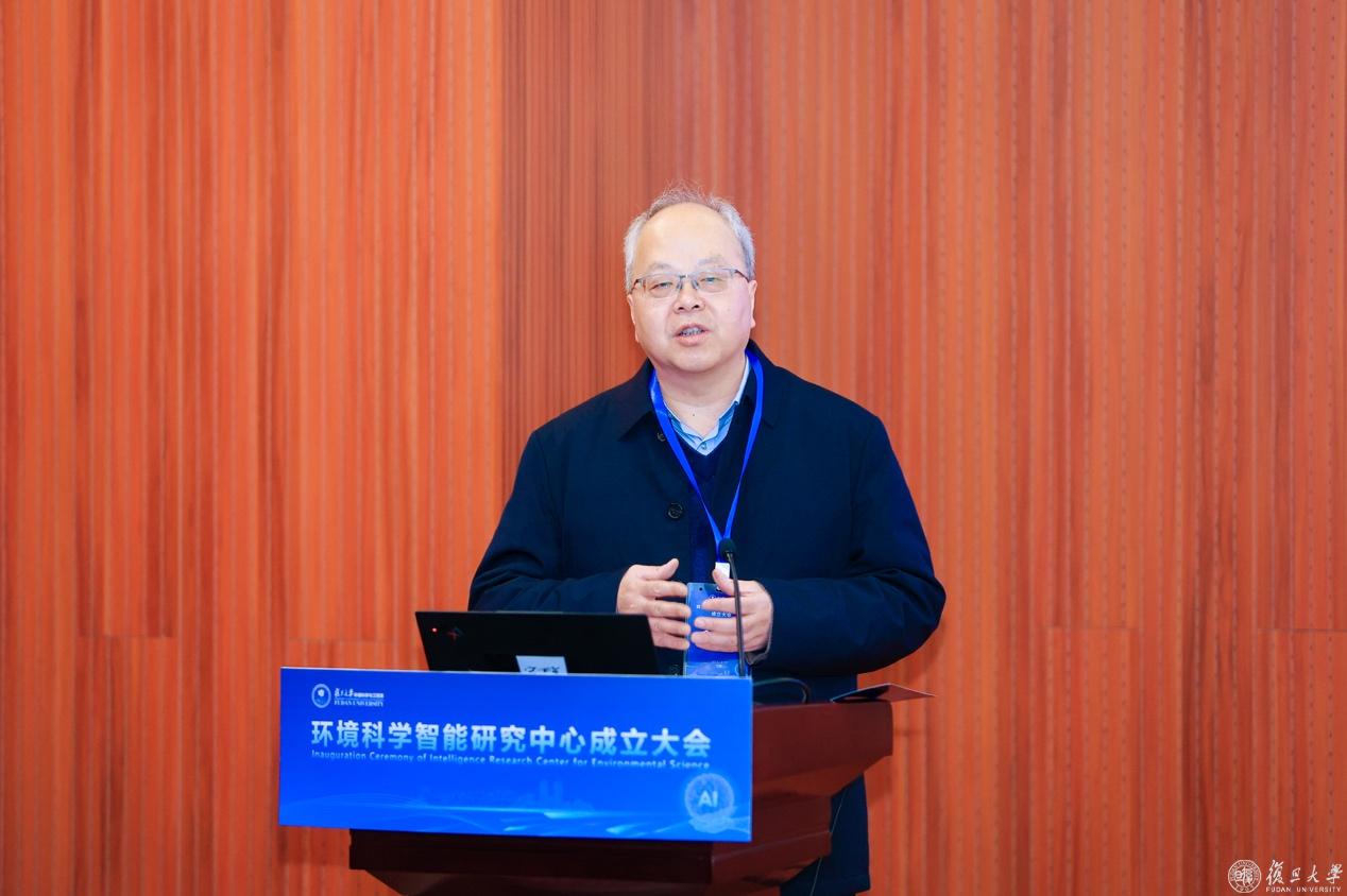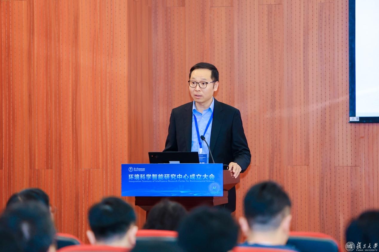 姜育刚在致辞中表示,复旦大学高度重视环境科学与人工智能的交叉融合发展,环境科学智能研究中心的成立是学校深入推进学科交叉创新的重要举措。中心将立足国家重大战略需求,推动环境科学研究范式变革,为生态文明建设和碳中和目标实现提供有力支撑,为全球环境治理贡献“复旦智慧”和“复旦方案”。