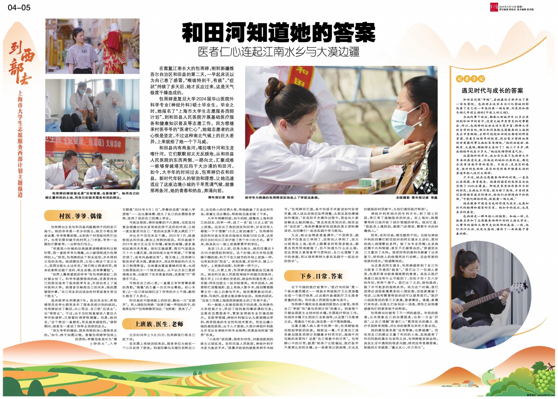 如今,服务西部已有237个日夜,包雨婷仍在和田县。新时代年轻人的韧劲和理想让她迅速适应了属于干旱荒漠气候的这座边境小城,就像那两条河。她的青春和热血,奔涌向前。