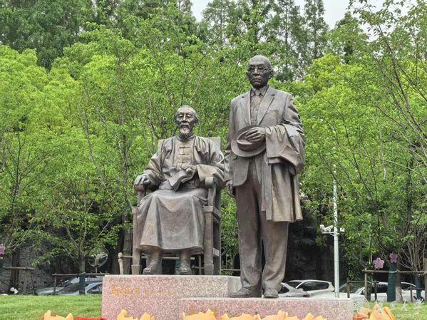 纪念复旦创始人和奠基者,马相伯、李登辉雕塑揭幕