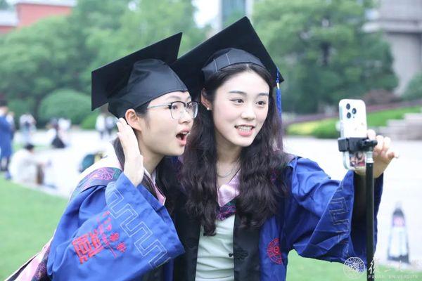 6月9日下午,本硕博毕业生身着学位服齐聚光华楼,戴好学位帽、扶正流苏、扶平垂布,整理衣冠,笑意盈盈。当书记校长微笑步入队列中,现场响起欢呼声和掌声,快门将这一刻定为永恒。