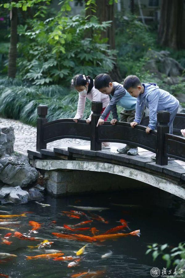“快看!好漂亮的锦鲤”!几尾锦鲤悠哉悠哉地游过,身上点缀红、金、黑、白的斑斓色彩,在水面编织出一串粼粼的水纹,岸边的稚童们拍着手欢叫着,水旁的行人与鱼群对话着,好一幅“燕园观鱼”图!