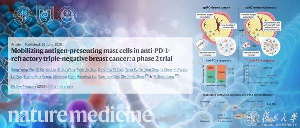 6月25日,复旦大学附属肿瘤医院乳腺外科邵志敏教授、江一舟教授团队在国际著名学术期刊《自然·医学》(Nature Medicine)发表的一项研究成果显示,该团队基于AI技术,整合528例三阴性乳腺癌患者多模态信息,首次明确非典型的抗原呈递肥大细胞(apMC)是抗PD-1免疫治疗效果发挥的关键因素,它可以激活肿瘤反应性T细胞,促进抗肿瘤免疫应答。