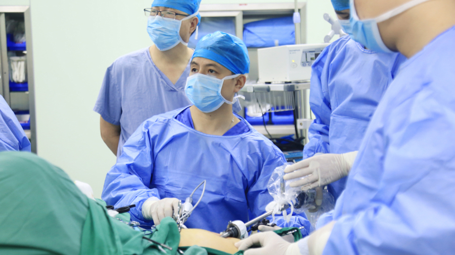 这份紧迫感在2020年周易明参加华山医院国家巡回医疗队时被“倍速”点燃。那是一台凌晨四点的多发伤急救手术,在江西赣州寻乌县,病人下腔静脉破裂大出血、胰腺损伤、十二指肠断裂……周易明快速检索着罕见病例的处理方案,计划手术方案,并快速投入救治。