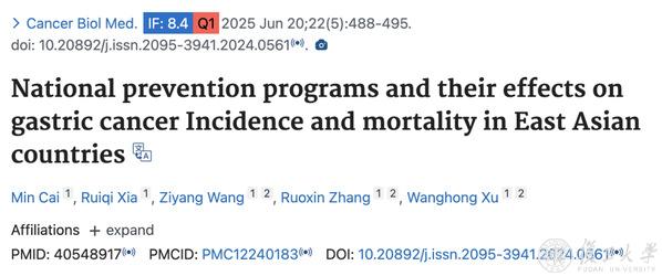 兴趣驱动的研究与扎实的学科功底,让蔡旻在学术道路上收获颇丰。她熟练运用Meta分析、队列研究等多种研究方法,能够根据资料数据特征选择合适的统计模型进行分析。在深入研究过程中,她关注到我国胃癌疾病负担居高不下。为探讨背后成因,在徐望红教授的指导下,她查阅1万余篇文献,奔走于多个图书馆收集不同国家几十年来相关政策与数据,并建立模型,为我国胃癌预防的政策制定提供了重要依据。她以第一作者身份在SCI一区期刊发表论文,题为“National prevention programs and their effects on gastric cancer Incidence and mortality in East Asian countries, Cancer Biology & Medicine”。