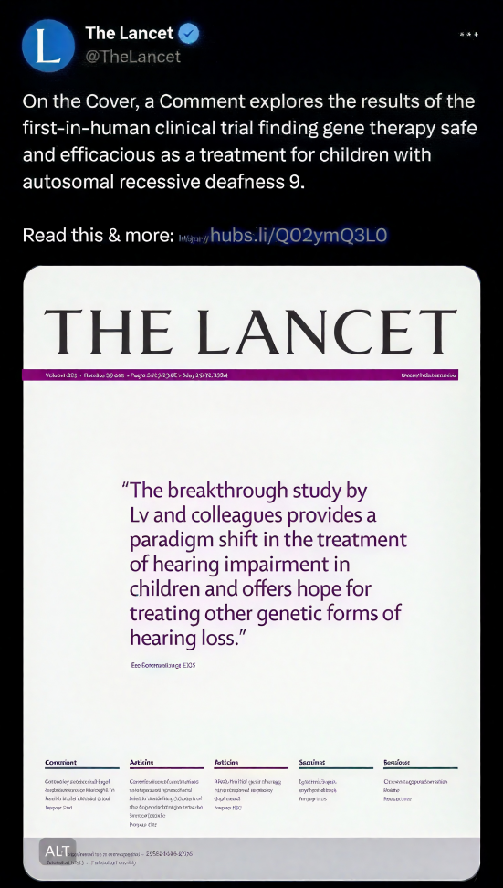 这一研究成果不仅证实了基因治疗在先天性耳聋治疗中的疗效稳定性,还为临床医生在治疗方案选择上提供了关键依据,标志着遗传性耳聋治疗正式迈入精准听觉医学的新纪元。后续,团队将纳入更多的患者,进行更长期的随访比较。尽管目前只有一个耳聋基因治疗进入临床,相信在不久的将来,随着基因治疗技术的不断完善和推广,会有更多其他耳聋基因导致的先天性耳聋患者能够重新聆听世界的美妙声音,开启全新的生活篇章。