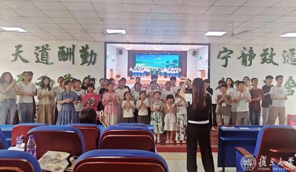 转眼,来到告别时刻。支教结束仪式上,队员们精心编排的情景剧《光从复旦来:少年启航记》拉开离别序幕。剧中融合了当地“花鼓灯”非遗文化元素和特产西瓜,几乎全员登台亮相,用稚嫩的表演重现十天来的学习与收获。