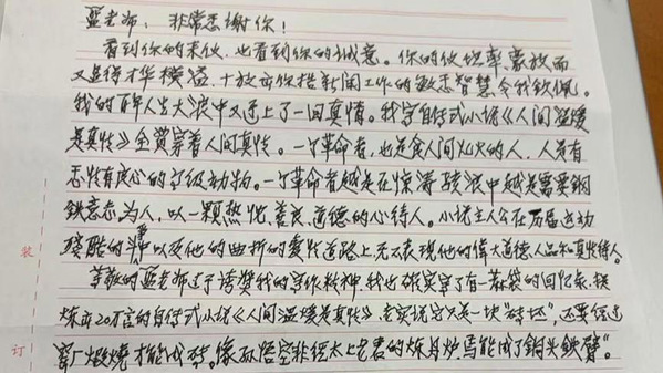 从新民晚报上看到报道后,李春希给蓝星宇写了一封信