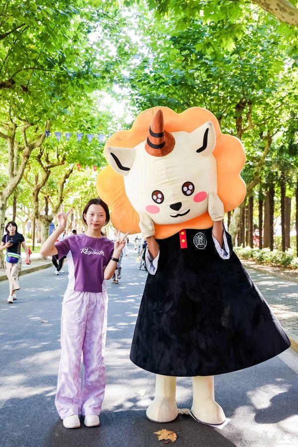 “咔嚓!”院系萌宠与新生同框一起比个耶✌️。