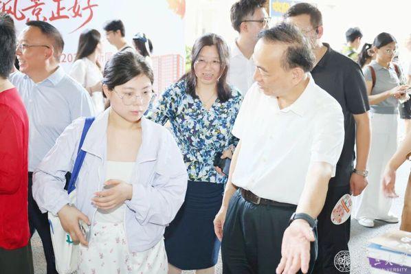 上午,复旦大学党委副书记、上海医学院党委书记袁正宏,上海医学院党委副书记杨伟国,上海医学院副院长吴凡一行深入枫林校区体育馆西侧连廊的迎新现场,亲切看望2025级新生及家长,并慰问一线工作人员和学生志愿者。
