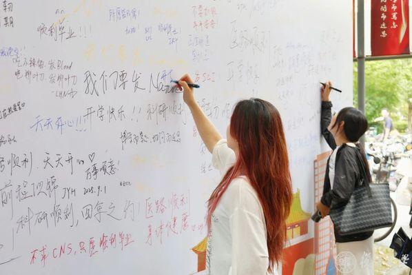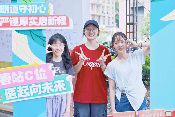 有你“枫”景正好,自此医路繁花。彩旗轻扬,展板列阵,报到点前,身着红、蓝马甲的志愿者穿梭其间,拍立得拍照打卡、照片实时直播、定制帆布袋与各类新生文创……初秋的阳光里满是医学新生的朝气。