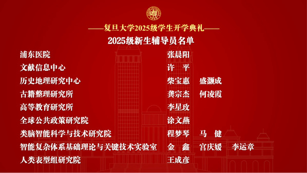金力向2025级新生代表赠送校徽和复旦“文化校历”。新生们拿到的《文化校历》新增“我们的沃土”板块,集中呈现校内周期性活动,拥住所有的好奇与向往,等待同学们去自由探索。
