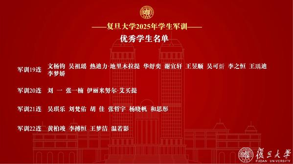 军训团团长向完成军训任务的全体学生致以祝贺。此次军训训练天气炎热,但同学的士气高昂,把军训的艰苦刻进了“博学而笃志,切问而近思”的践行中,在短时间内掌握了必备的军事技能。“军训结束即意味着剑已出鞘,你们剑锋所指,下一个征途一定是星辰大海。”他祝福所有参训学生,并宣布复旦大学2025年军事训练圆满结束。