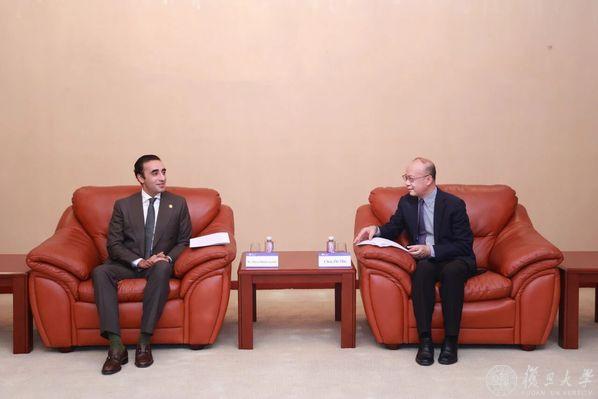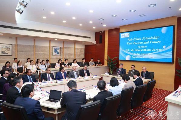 9月15日上午,巴基斯坦人民党主席、前外交部长比拉瓦尔·布托·扎尔达里(Bilawal Bhutto Zardari)率队到访复旦大学,就中巴友谊的传承发展与未来愿景发表演讲,并与复旦师生开展对话交流。复旦大学副校长陈志敏会见比拉瓦尔一行。