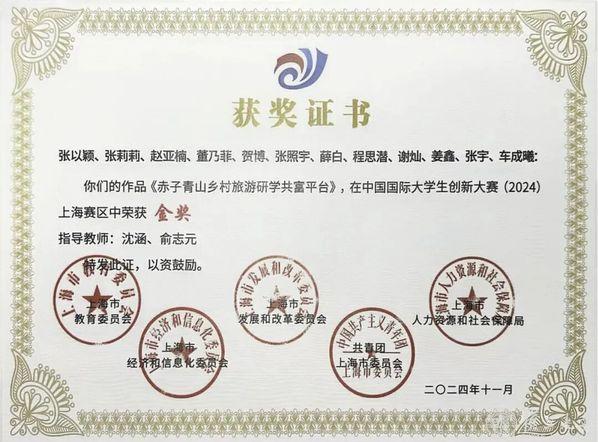 “赤子青山乡村旅游研学共富平台”项目获奖证书