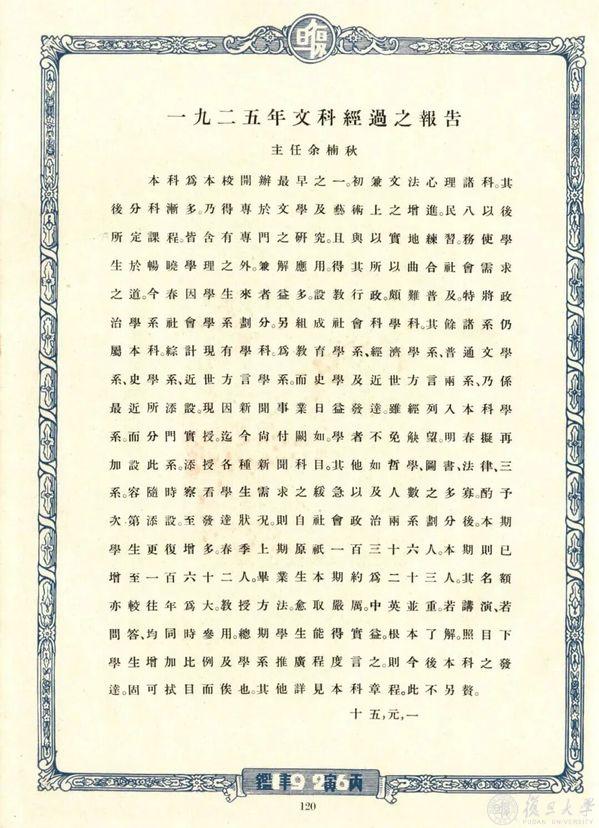 1925年秋,复旦大学史学系正式建立,是校内最早系科之一。其时余楠秋先生留美归来,担任首任系主任,立意吸纳西方历史研究视角,课程涵盖中国近百年史、欧洲史、亚洲史、经济史等。“学生虽少,但都勤奋好学,成绩斐然。”