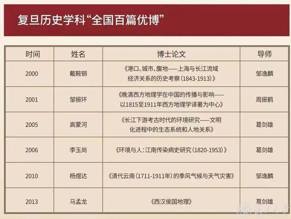 复旦历史学科“全国百篇优博”