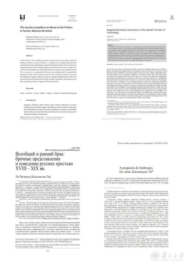 世界古代文明方向青年教师在国际知名刊物上发表的部分论文