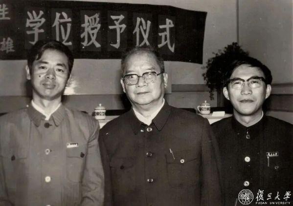 谭其骧先生在博士学位授予仪式与周振鹤(左一)、葛剑雄(右一)合影