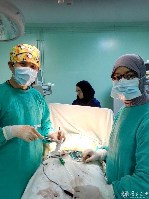 周坚(左)在摩洛哥赛达特省哈桑二世医院做手术