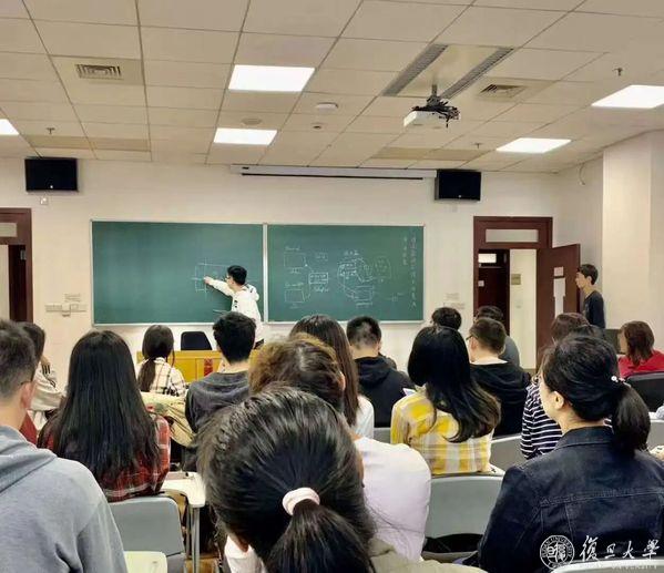 周文杰与同学们在光华楼西辅楼701-702分享新研究、新想法
