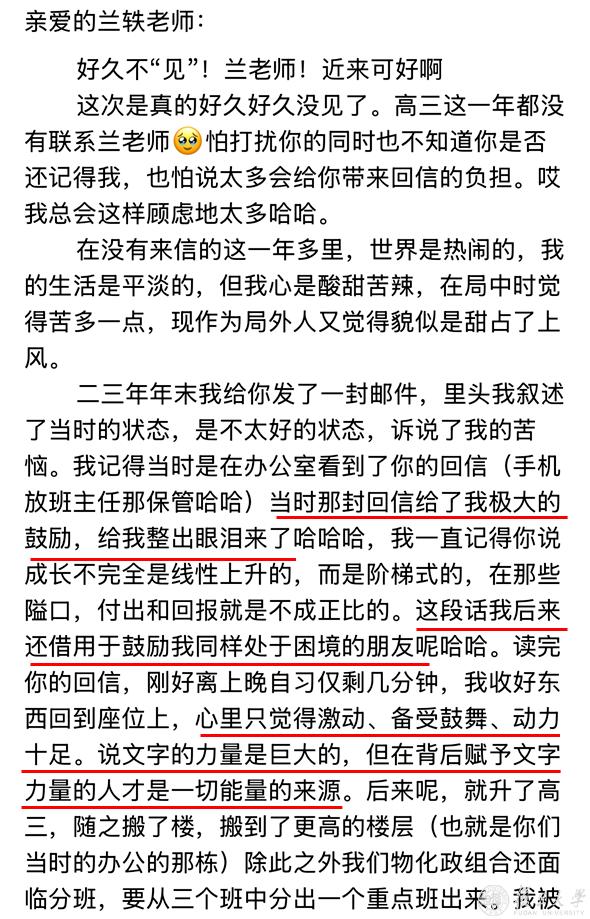 昔日播种的种子,已破土成荫,枝繁叶茂,让“思源精神”生生不息。正如,管理学院2022级本科生兰轶给学生的回信中写到的: