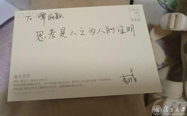 她回忆,“当时,我们的支教班主任李欣睿老师给班级每个人都发了一张明信片,明信片上有一句话:‘思考是人之为人的证明。’”这句话激励着谭丽颖,她还把这张明信片设为朋友圈背景图。