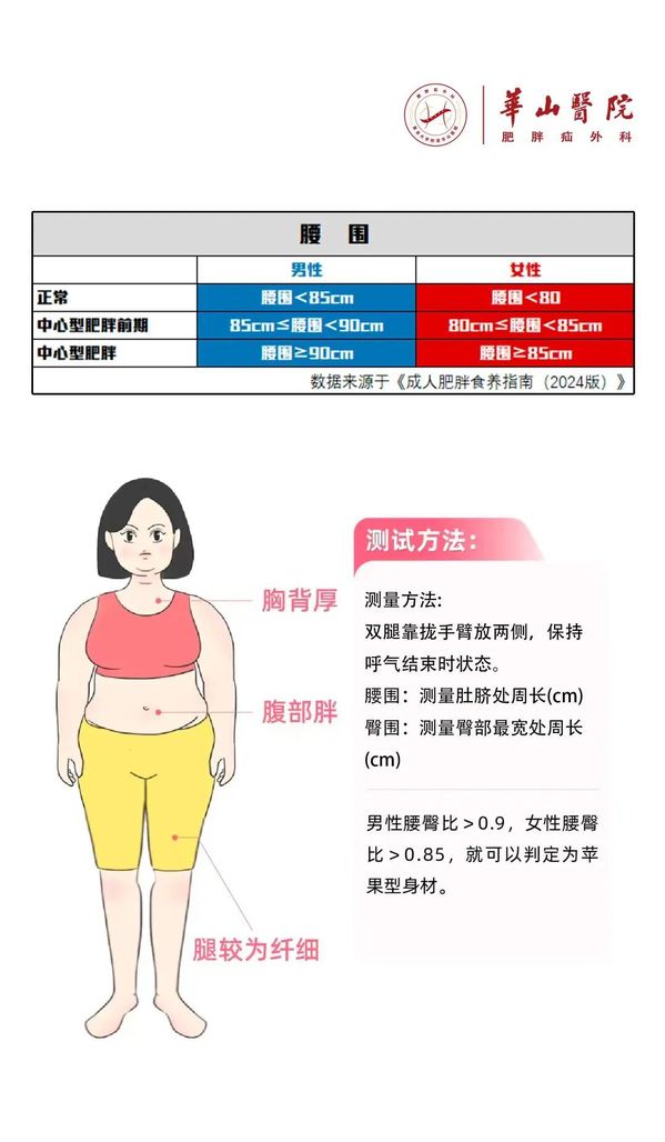 ► 腰围:男性≥85cm、女性≥80cm提示内脏脂肪超标,与糖尿病、心血管疾病风险直接相关。