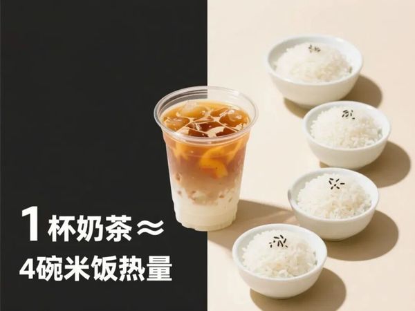 含糖饮料:1杯奶茶≈4碗米饭热量,换成无糖茶。