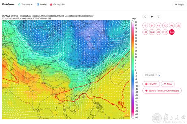 “这一切气候异常都跟错配的大气环流形势有关,核心就在于副热带高压异常偏北偏强。”“中气爱”联合主创、大气与海洋科学系2023级直博生傅正航介绍,“常年10月,副高本来南撤到华南地区并进一步退入南海,但今年10月,副高非但不南退,而且还要和盛夏一样北上,偏离正常轨道1000多公里,导致气象乱套。”
